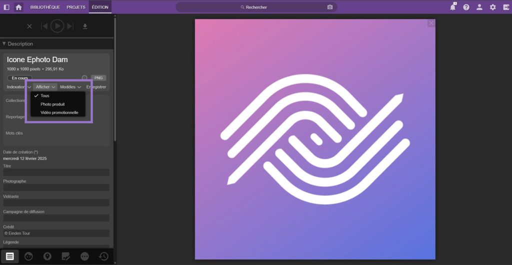 - de différencier l’affichage des champs en fonction de la nature du média (son, vidéo, photo, document).
